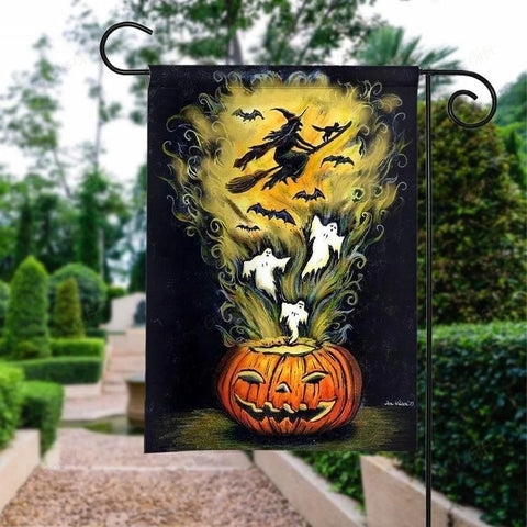 Witch Flies Double Sided Halloween Garden Flag For Outdoor Yard Decoration Home Decor ND