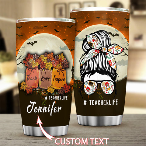 Teach Love Inspire Teacher Life Tumbler Skull Coffee Cup Halloween Gift for Teachers HN