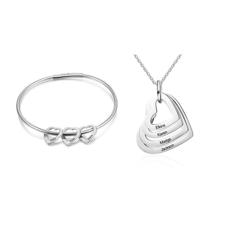 Personalized Family Name Mothers Day Necklace Bracelet Set Mom Jewelry Gift For Mom Grandma Wife HT
