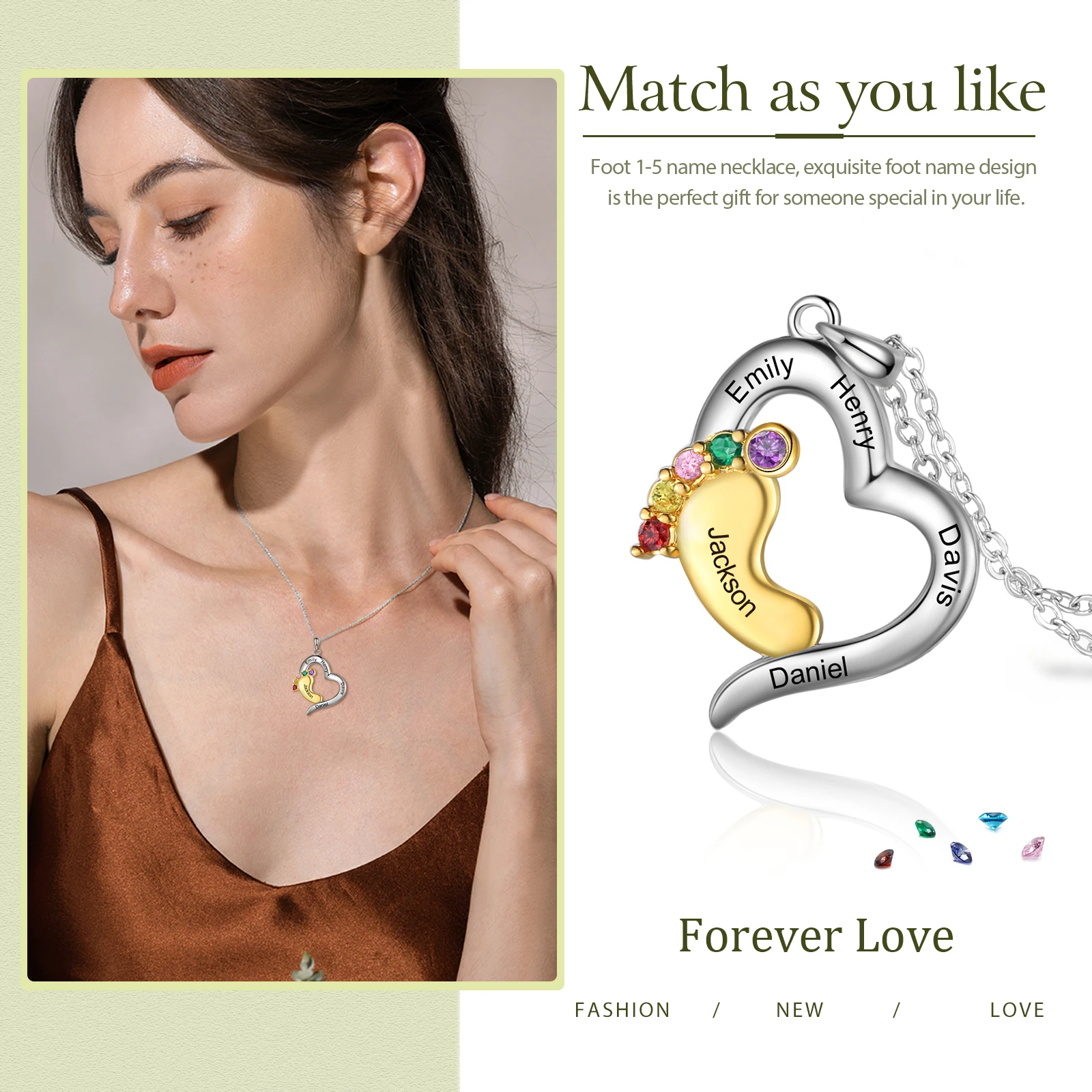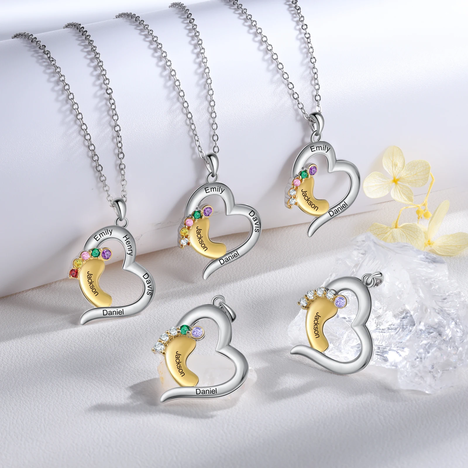 Personalized Silver Heart Mothers Day Necklace With Birthstones Mom Jewelry Gift For Her, Mom, Grandma, Wife HT