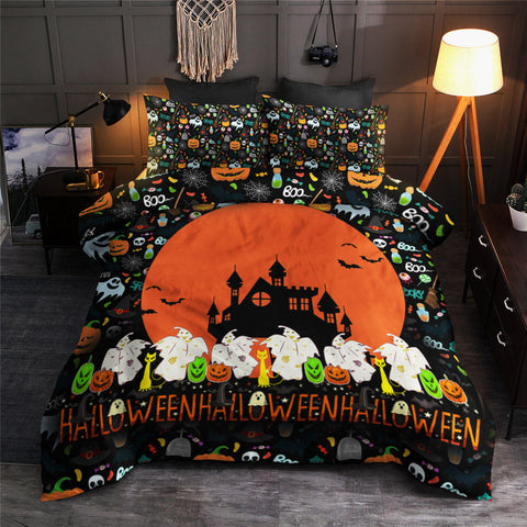 Halloween Haunted House Bedding Set Bedspread Duvet Cover Set Home Decor ND
