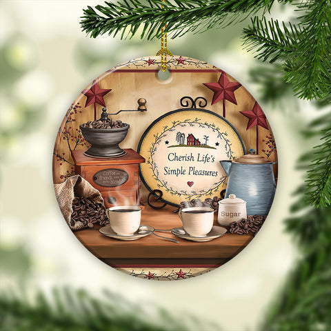 Cherish Life's Simple Pleasures Ornament Christmas Tree Hanging Ornament Xmas Gift Primitive Coffee Country Decoration