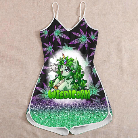 Weedicorn Glitter Weed Romper For Women Cannabis Marijuana 420 Weed Cl – Lavenzee