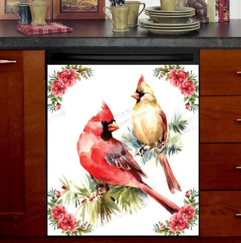 Beautiful Cardinal Couple Dishwasher Magnet Cover Kitchen Decoration Decals Appliances Stickers Magnetic Sticker ND